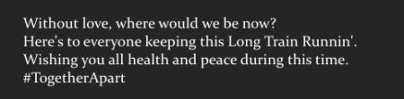 I immigrated to the United States, specifically to California, in late 2014 because of music. Everything that has driven me to be here and keep me here in spite of obstacles and challenges that would defeat others less stubborn, or just much smarter, revolves around my passion for music. It’s generally those concerts and events on my calendar that keep me going. So the isolation I am now feeling is as much about being cut off from live music as it is about being apart from people. I have some work to get on with, but it’s slow out there in the PR world. Major artists transitioned quickly to doing live streaming gigs or appearances of one kind or another (check out Rick Springfield’s series on writing “Jesse’s Girl” – that man is a consummate comic) so they are getting the bulk of attention from the press. Those major artists are smartly keeping themselves visible, and ironically making themselves more accessible by showing fans their homes and being spontaneous and improvisational, and the opportunities to view these online appearances are overwhelming to the point where I can’t even try to keep up. I did watch the “Global Citizen One World: Together At Home” event tonight (when I would otherwise have been watching the Eagles) and there were the Rolling Stones and Paul McCartney and Elton John among others, but no Eagles. The Eagles guys are not participating in anything that might connect them to their fans during this time, other than Vince Gill, who does his own thing very openly. The three originals are staying invisible and silent, which sucks for their fans, but hopefully they’re all staying healthy.